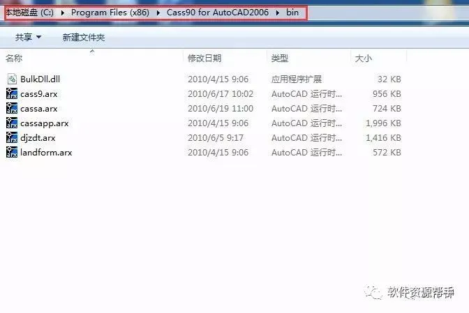 10.打开安装目录C:\program files(x86)\cass90 for autoCAD2006\bin(参考第4步安装路径),粘贴复制的文件