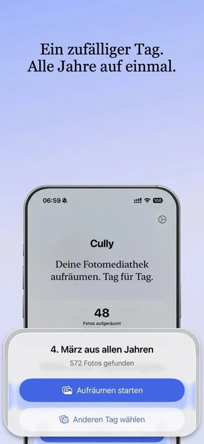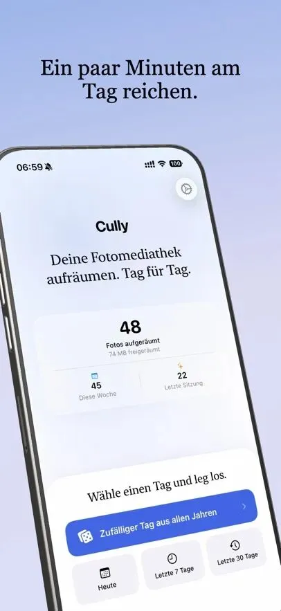 超过20,000张照片,不知从何下手?重复照片、模糊的图片、2019年的截图?Cully把这一切变成你真正能做到的事。方法很简单:选一个随机日期,浏览那天的照片 — 所有年份同时呈现。每次会话,生活的不同片段。留下最好的,删掉其余的。每天五分钟,你的图库变得更轻盈。使用方法• 点击随机,Cully选择一个日期。你会立即看到那天所有年份的全部照片。• 滑动浏览你的网格。点击选择,双指捏合缩放查看细节。• iOS会确认每次删除。照片移至”最近删除”,可在30天内恢复。功能• 隐私优先:无需账户,无云端,无追踪。你的照片永远不会离开你的设备。• 你的统计:查看你删除了多少照片,释放了多少存储空间。• 温和提醒:可选通知帮助你坚持下去。• 锁屏小组件:一眼查看你的删除统计。• iCloud同步:统计数据和设置在所有设备上同步。• iPhone和iPad:为每种屏幕尺寸优化的布局。• 快捷操作:从主屏幕直接启动。• 双指缩放:放大任何照片,做出更好的判断。