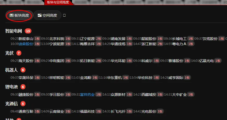 板块/高度 个股都有涨停时间 -
