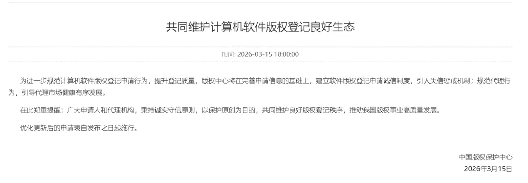 AI生成代码、开源平台拼凑出的材料,造成部分不是真的软件通过了软著登记。严重扰乱了软著登记秩序,影响了软著证书的公信力。