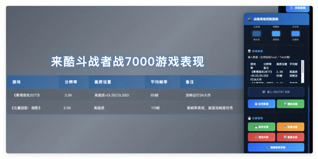 一开始就是生成HTML页面,本地直接跑,比如下面这个是导入表格,可以自己生成一些简单动效。