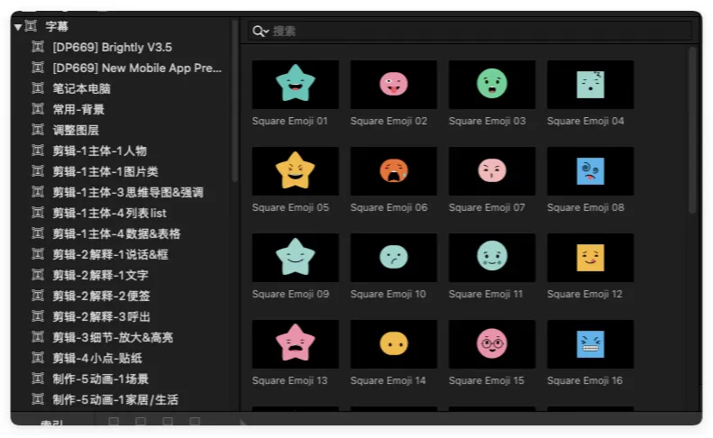 像图片里的,里面有很多非常简单的素材,是我自己写的,也有一部分是网上找的,后来删掉非常多,国外的素材真的不太适合国内用,要改太多了。
