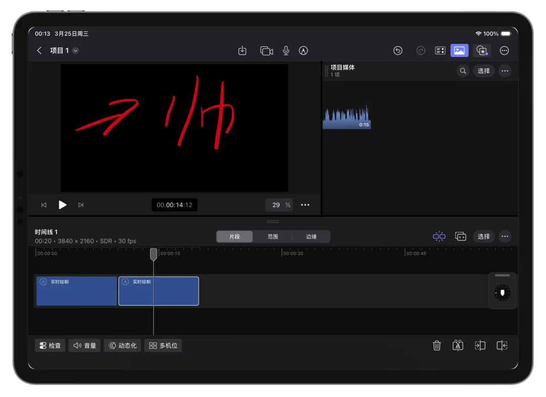 就想起来iPad版final cut Pro支持实时绘制(本文核心驱动力),也就是书写过程是视频那样,效果好一些。