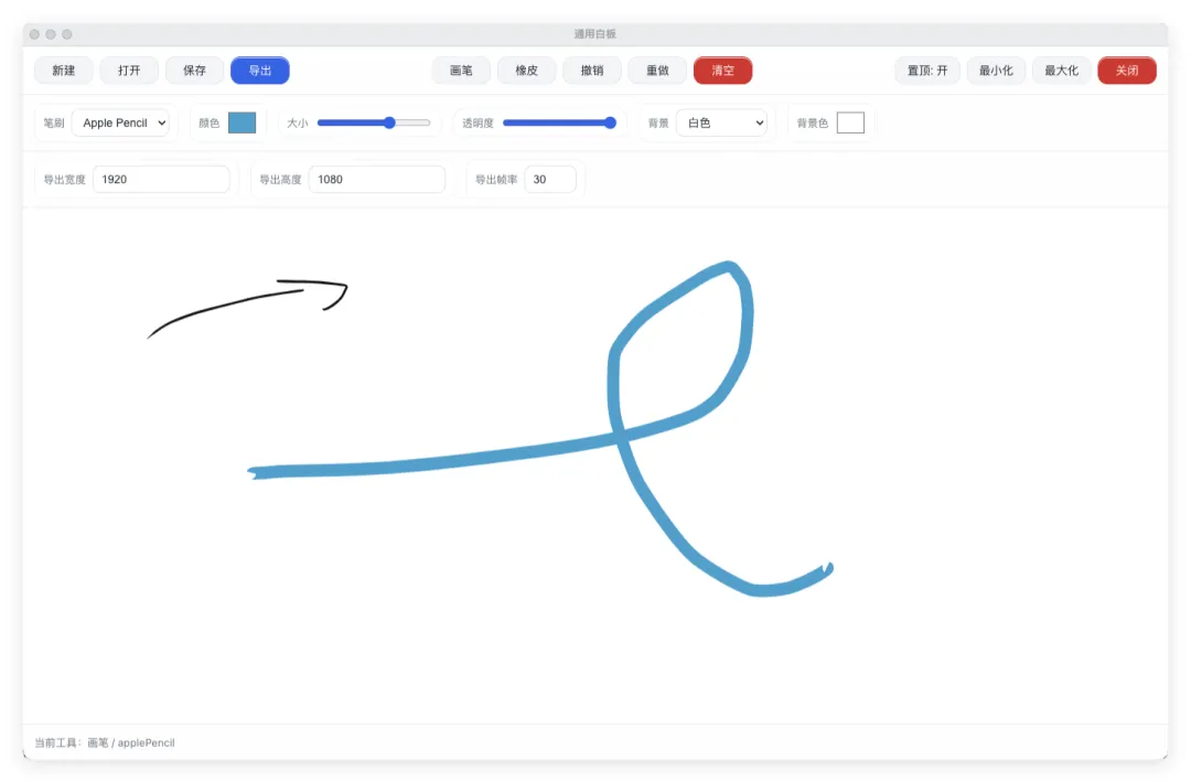 打开的界面是这样的,看着是不是很有范儿的样子,它功能就一个,把在画板里书写的过程,记录成视频。