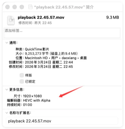 也就是准备休息之前的一刻,换了Claude(真废积分,不过超好用),它给我的编码换成HEVC with Alpha。