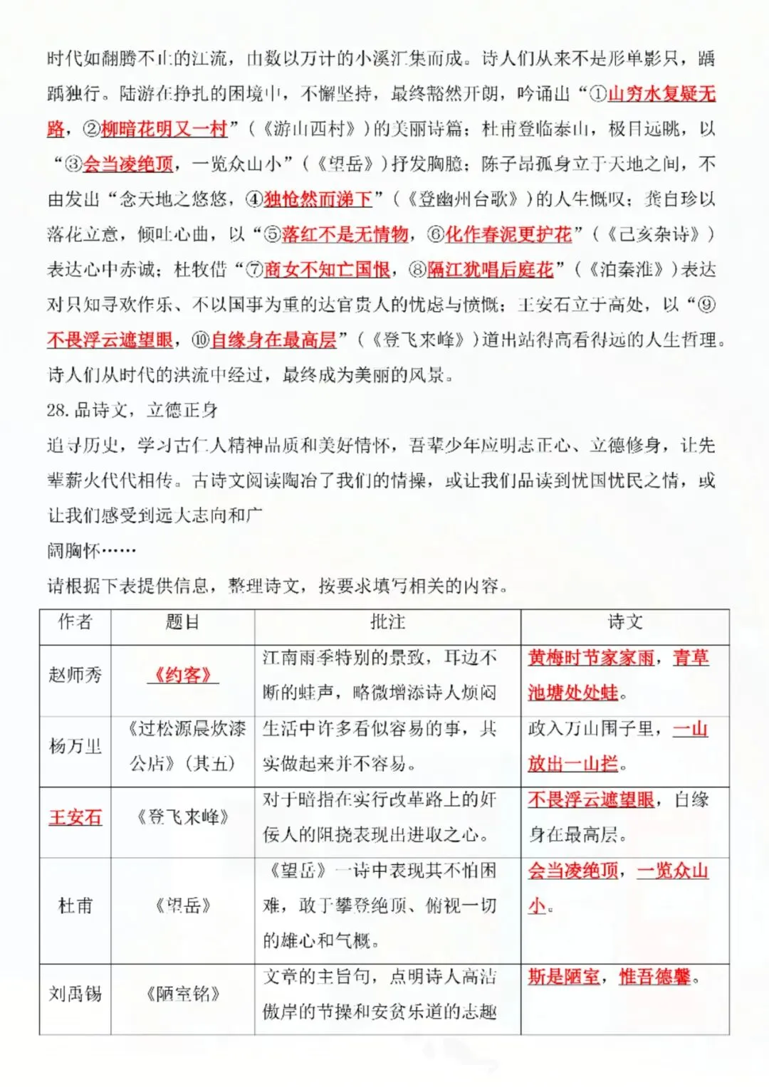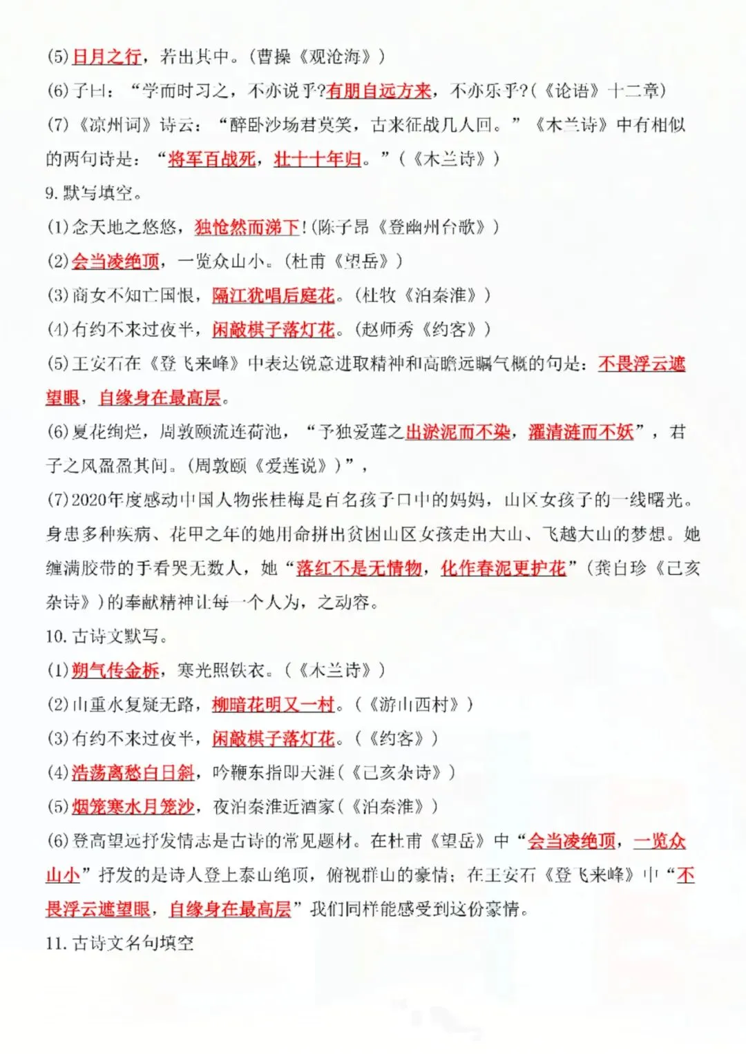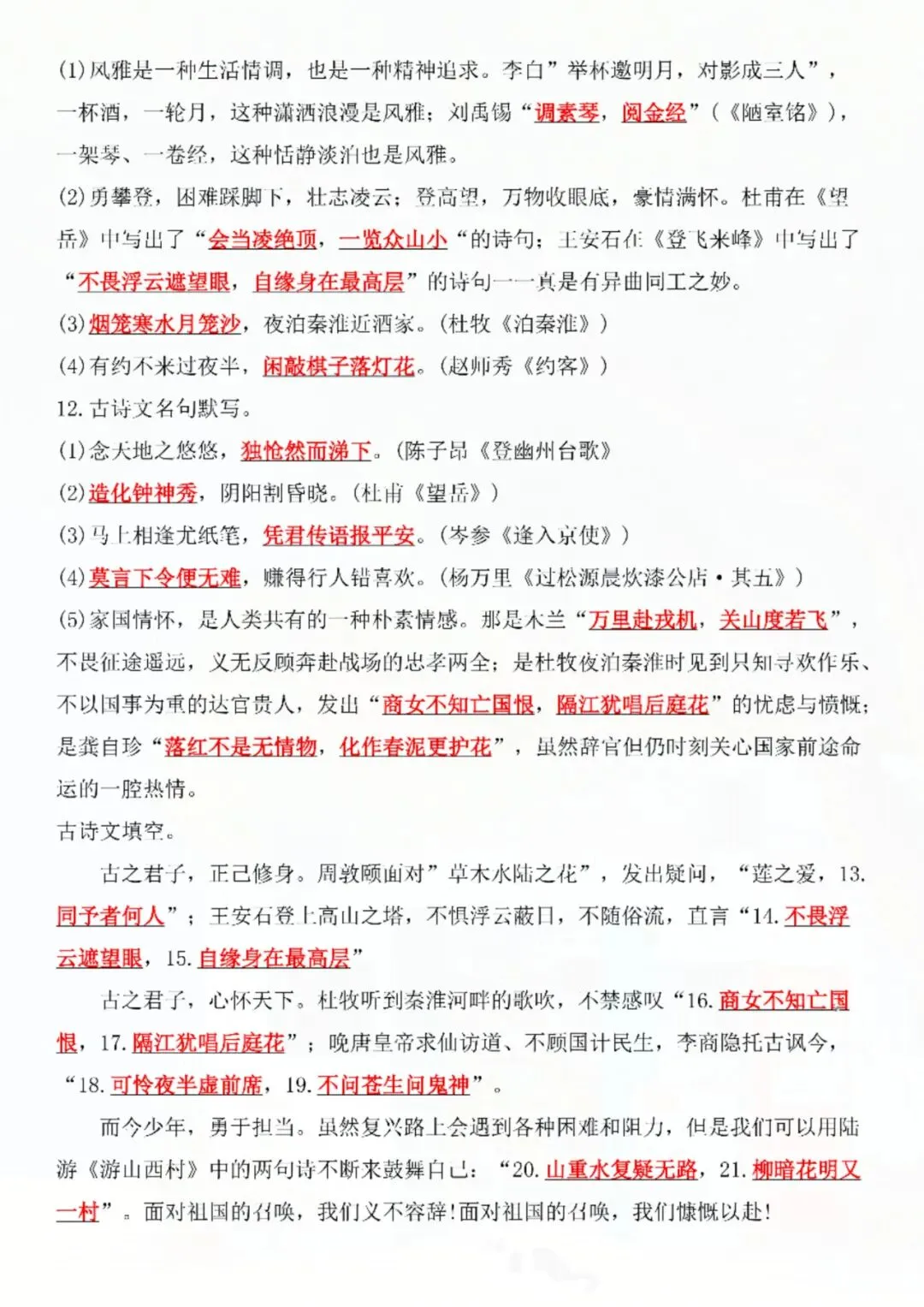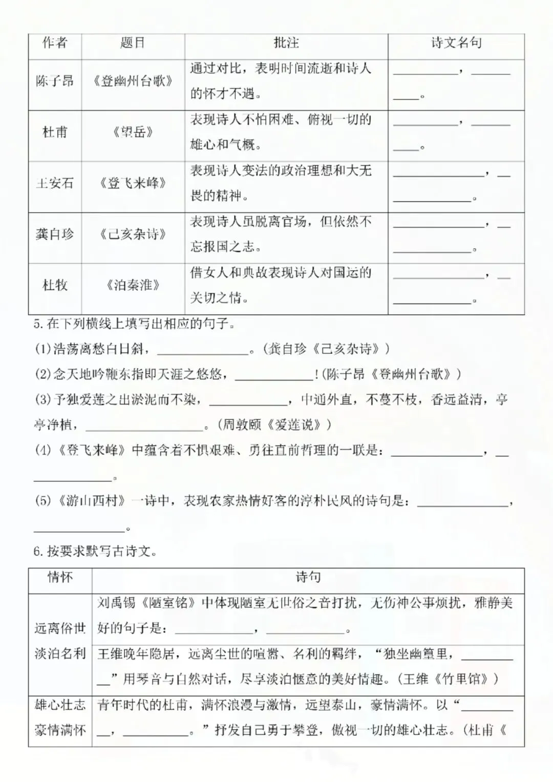 今天老师给大家整理了:七年级下册语文名句名篇默写复习 电子版可打印!