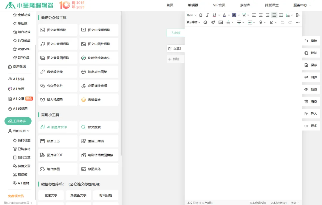经过对比多个编辑器,我最终选择了小墨鹰编辑器,它真的超级适合新手!