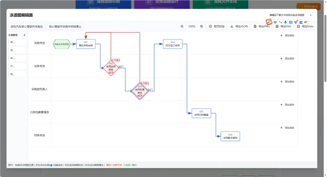📌场景示例:输入”吉利汽车核心零部件采购合同签订与备案流程“,系统自动识别为L2级流程,归属”采购从需求到付款”价值流,并生成完整分析报告。