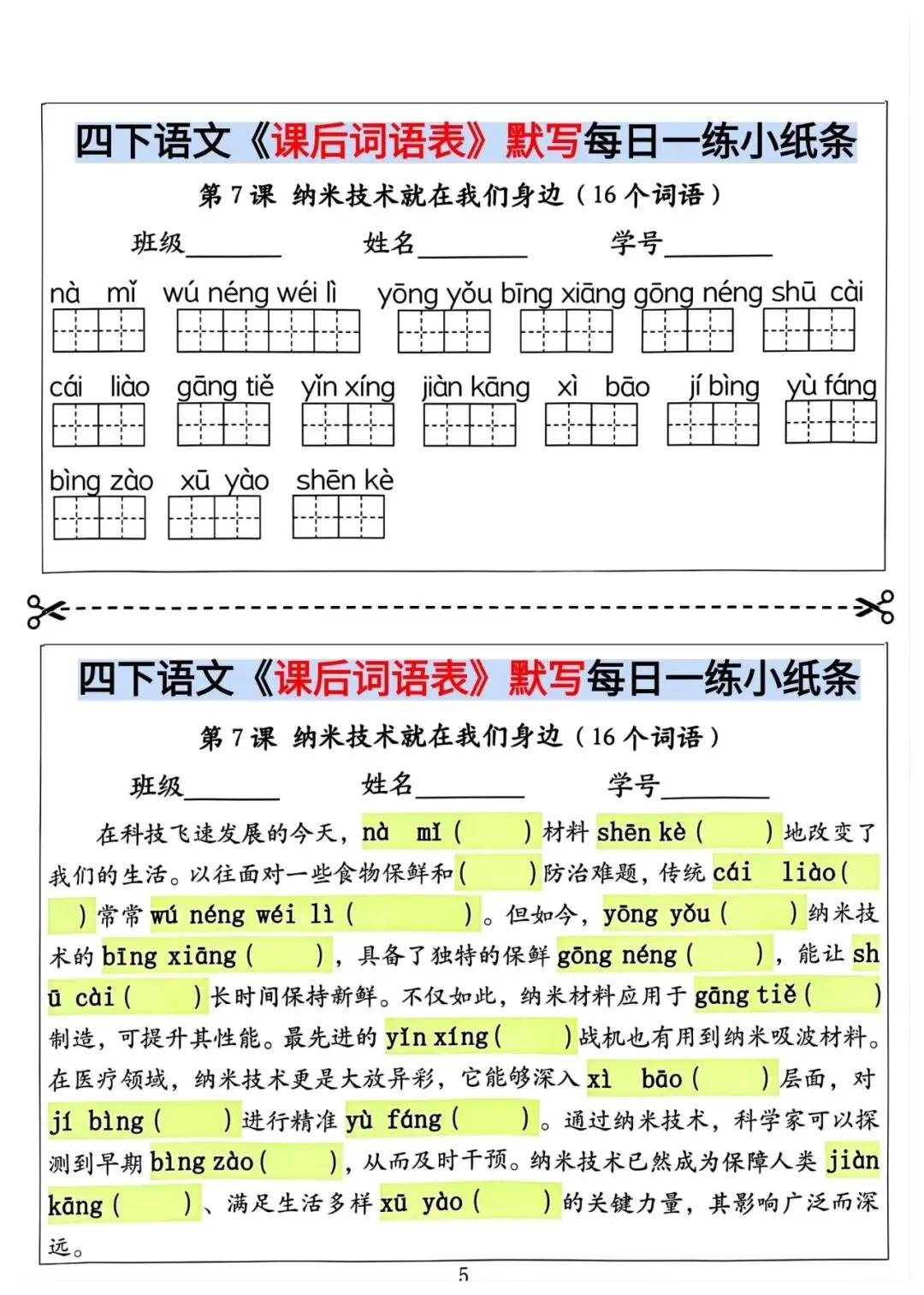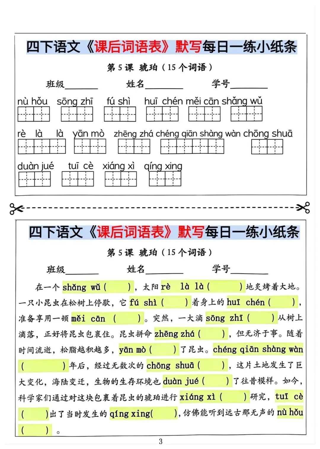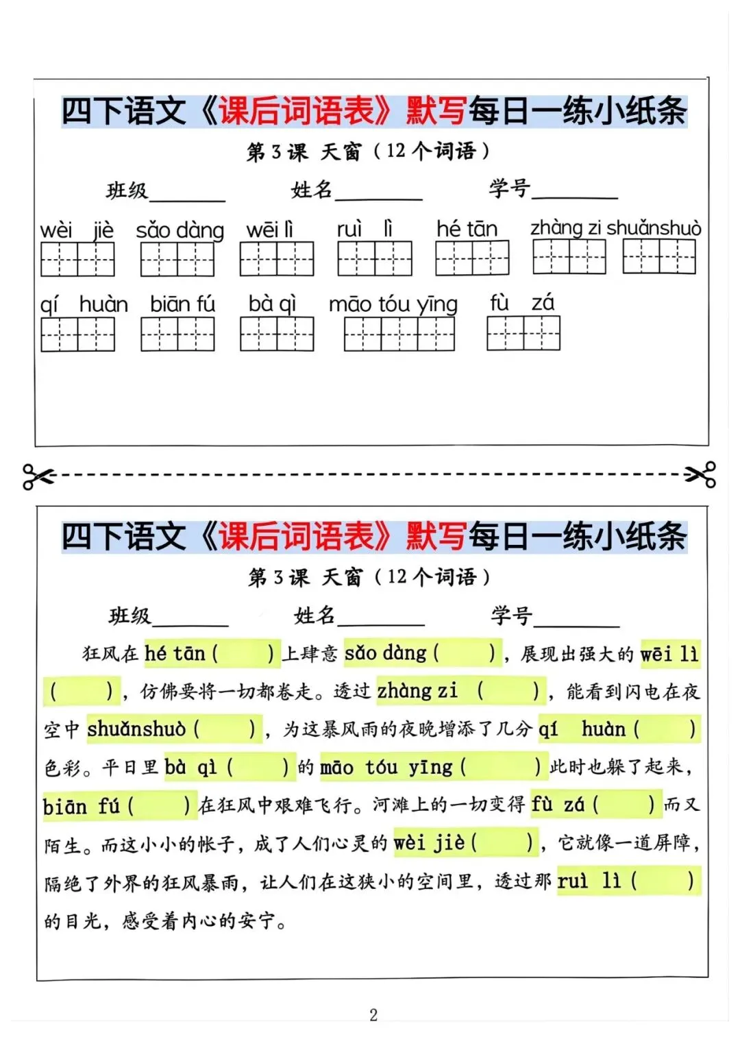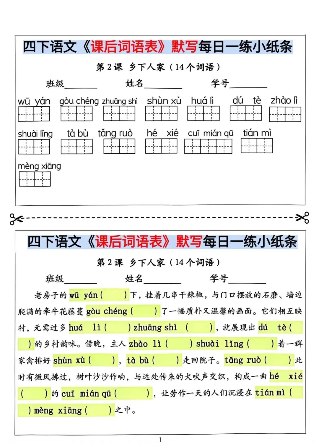 四年级下册语文课后词语情境默写(电子版可打印)
