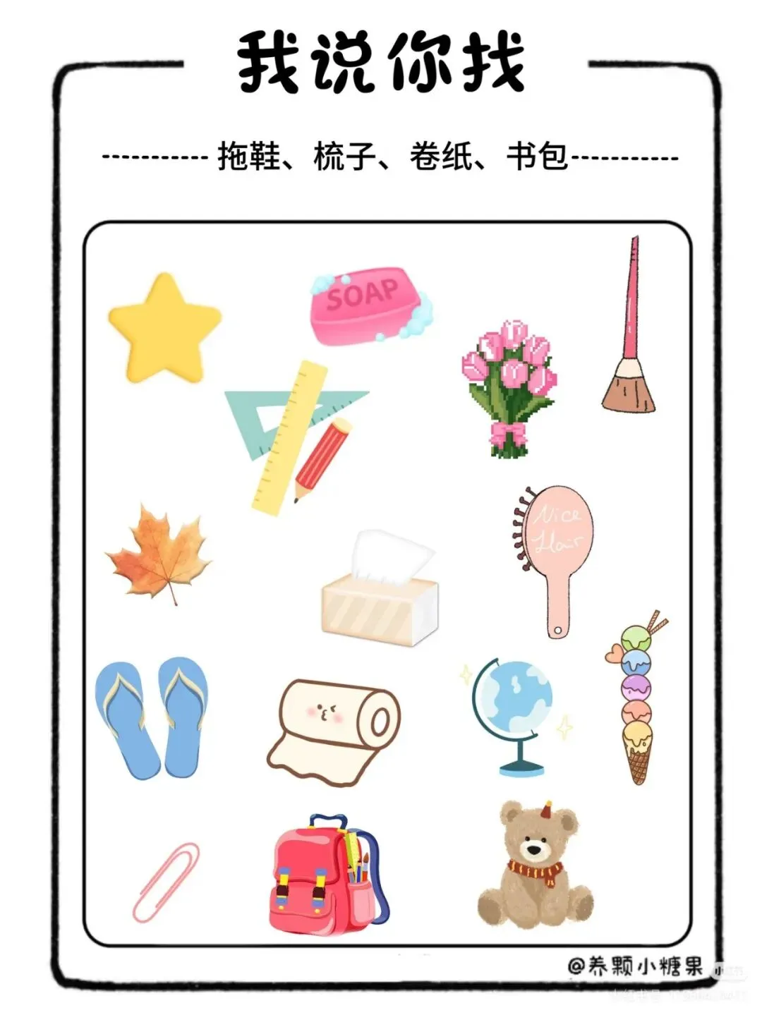 :内容超值,包含拖鞋、梳子、卷纸、书包、树叶、胡萝卜、巧克力、热气球、消防车、救护车、袜子、桌子、铅笔、眼镜、篮球、草莓、榴莲、树、西红柿、虾、滑板车、积木、橡皮、地球仪等数十个生活常见主题。 - 科学设计