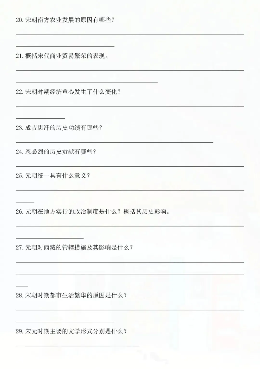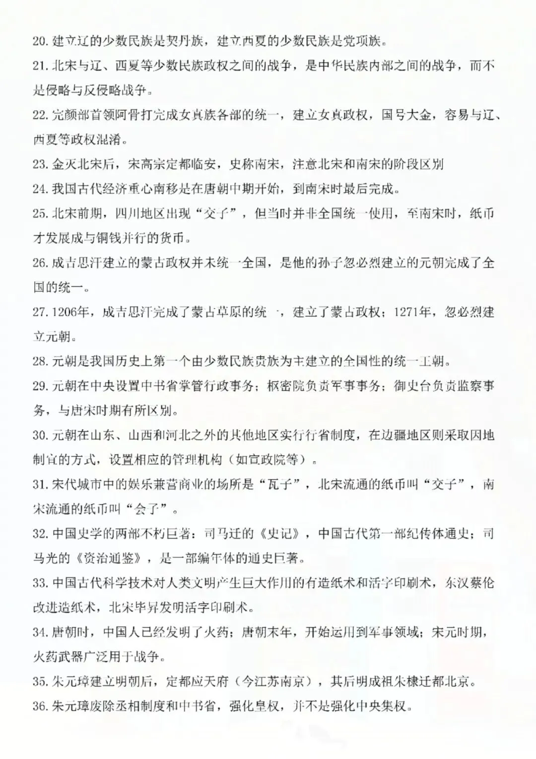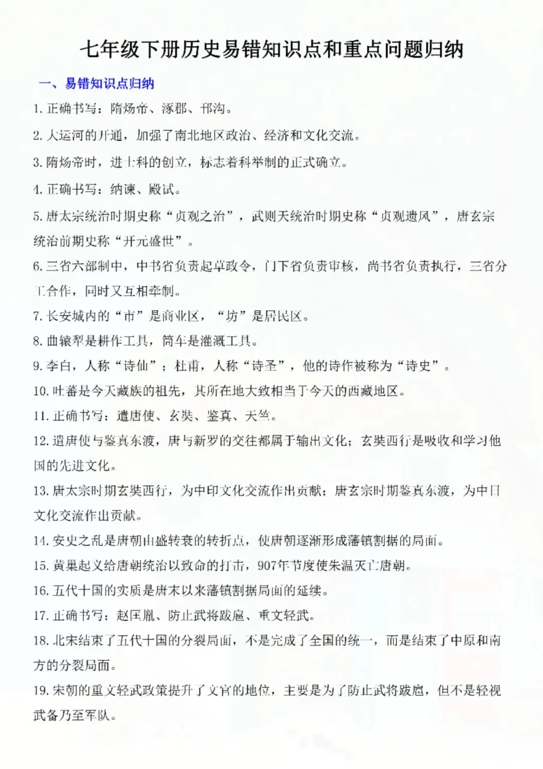 七年级下册历史易错知识点重点归纳 电子版可打印