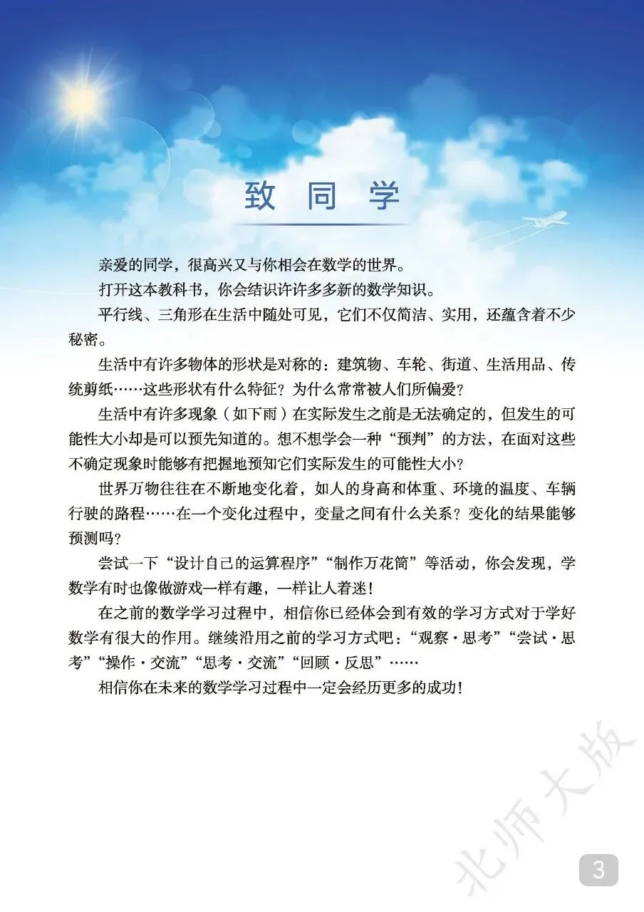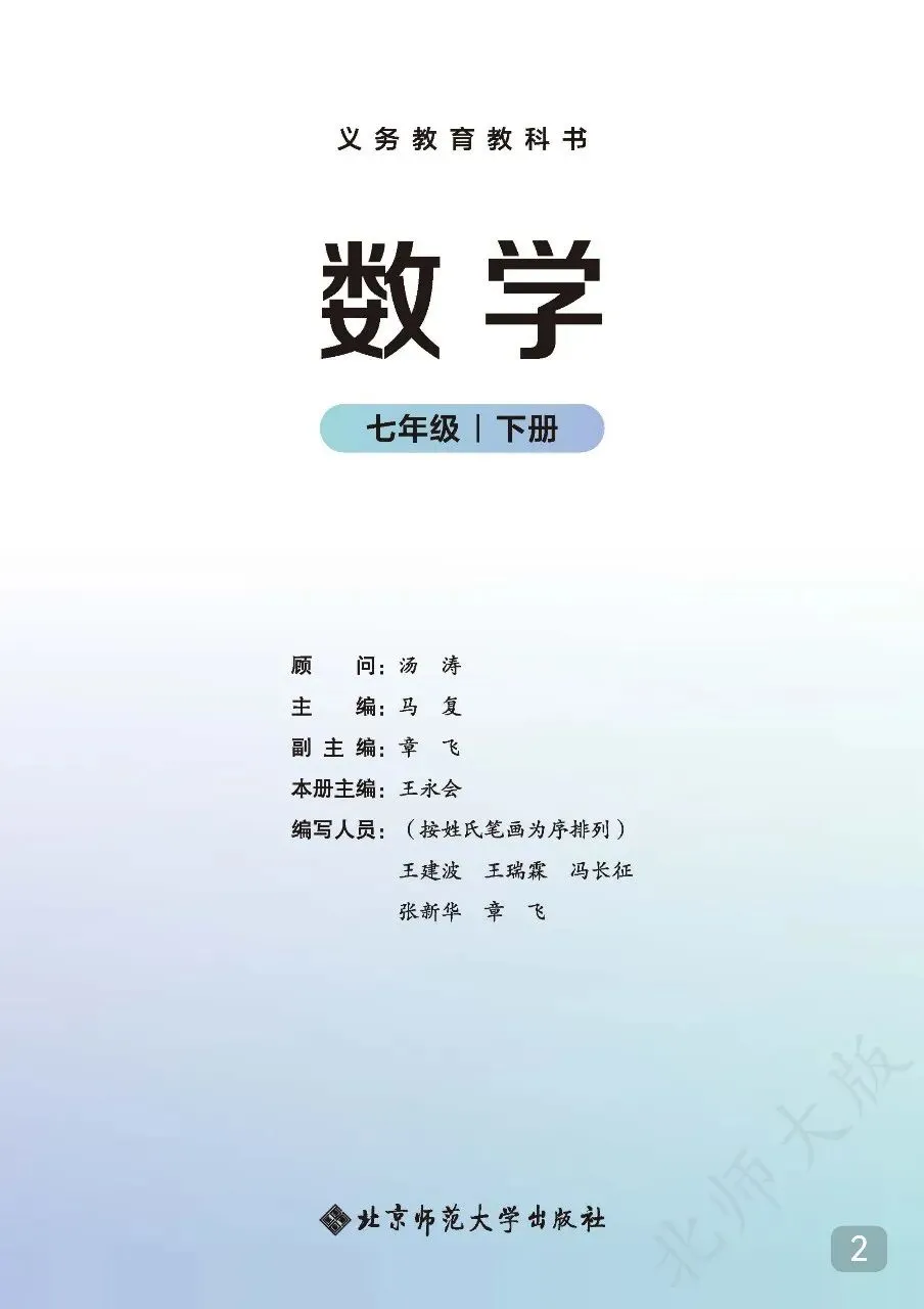 七年级(下)数学电子课本(北师大版).pdf 篇幅有限,无法全部展示。 请按照文末方式领取,无门槛永久免费,欢迎转发,帮助更多有需要的人~ 温馨提示: 文末有完整电子版领取方式! 领取完整电子版: ①:点一点右下角的“👍”和“❤️” ②:在公众号对话框中回复“资料1529”