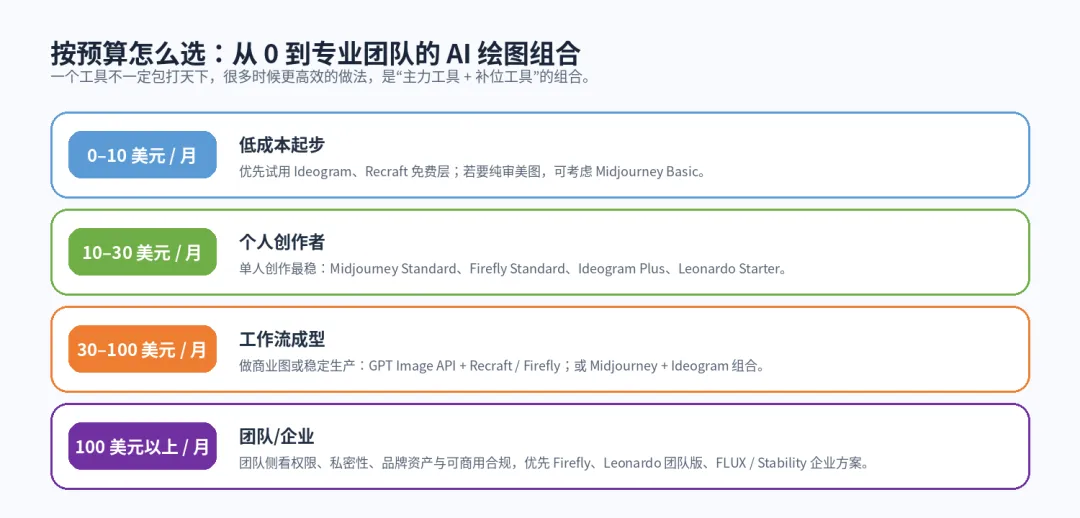 图 3不同预算段的 AI 绘图工具组合建议
