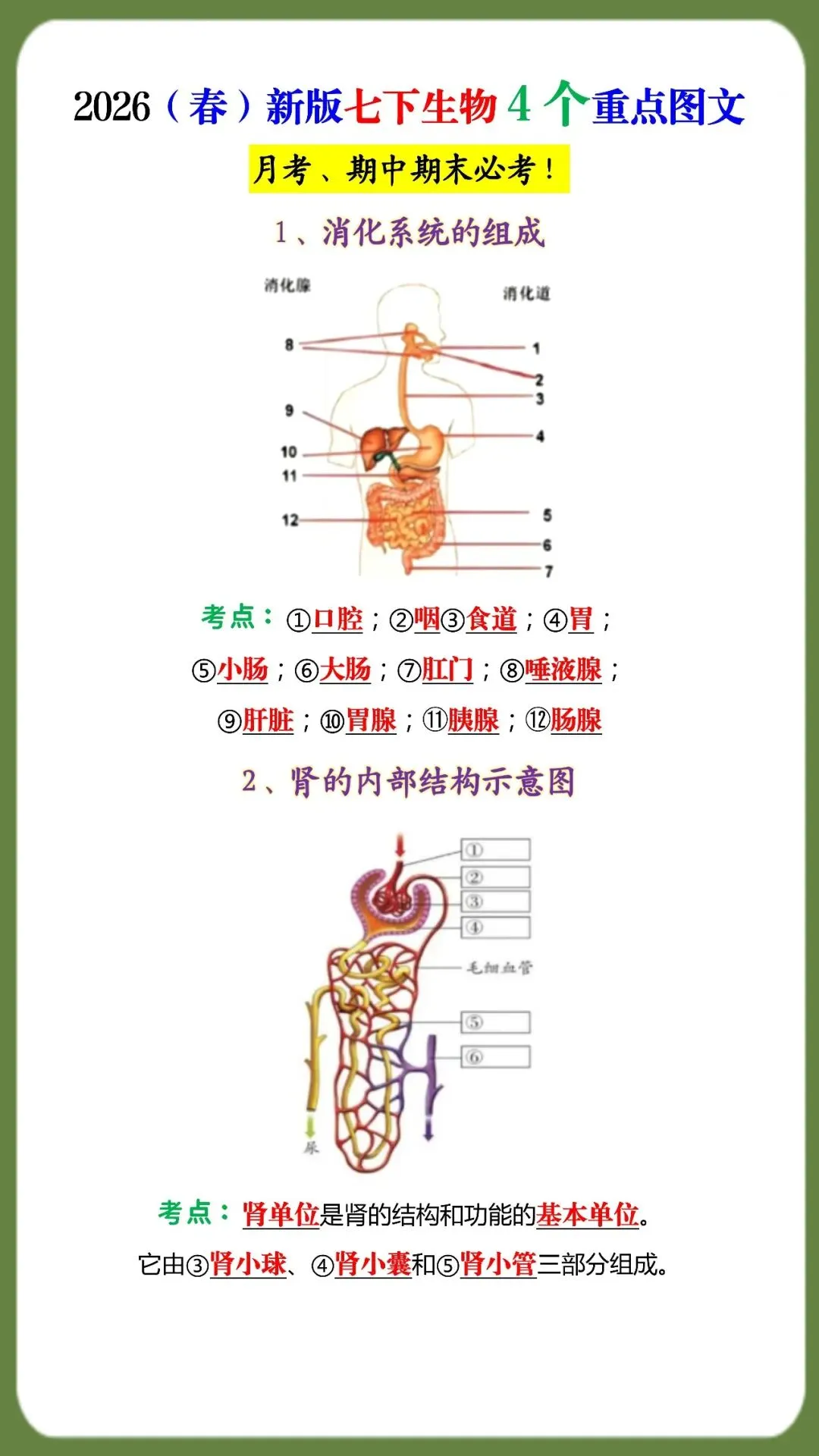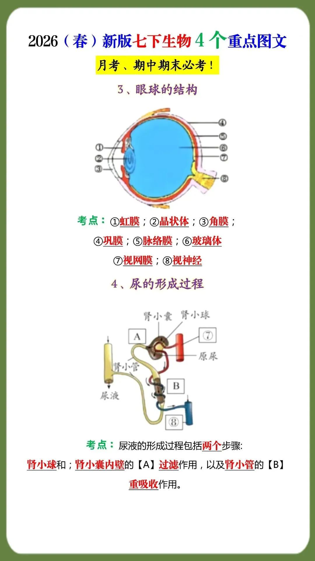 2026(春)新版七下生物4个重点图文(可打印)月考、期中期末必考! 初中生日常 老师今天整理了2026(春)新版七下生物4个重点图文(可打印)月考、期中期末必考! 电子版阅览 初中生配套学习教辅 如何领取这个电子版资料