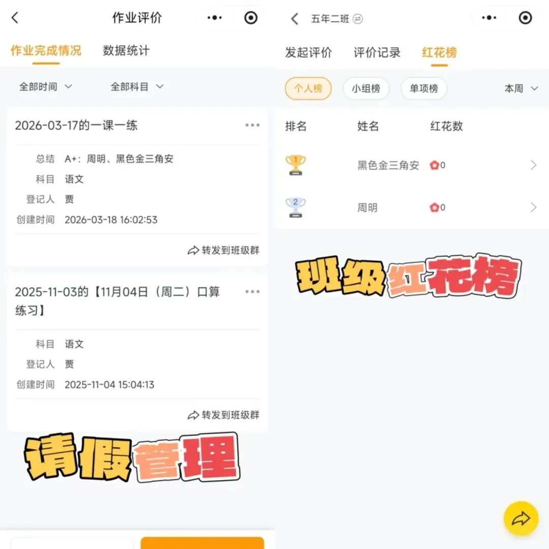 教育部备案,用着更安心除了上面这些,接龙管家还能快速发成绩、管请假、做学生评价,从幼儿园到高中老师都能用。