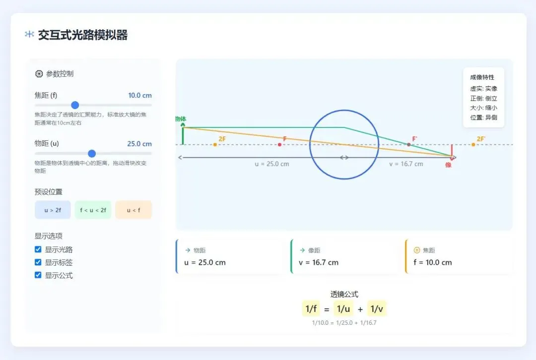 物理化学老师看过来!凸透镜成像、杠杆原理这些实验,用豆包能快速生成模拟动画,参数还能自己调,比静态图好懂多了。