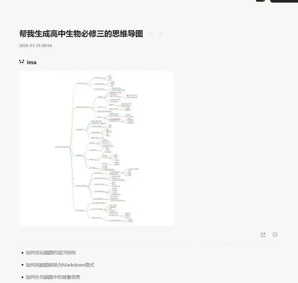 不管是 PDF、网页还是 PPT,把资料扔给 ima 知识库,10 秒就能生成清晰的思维导图。复习总结、日常教学用它理思路超方便!
