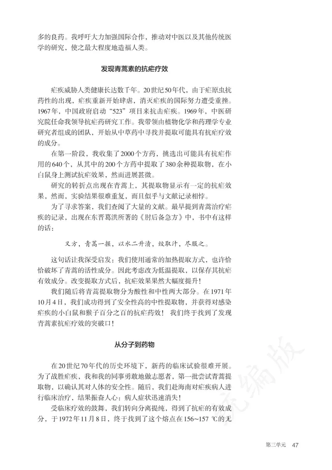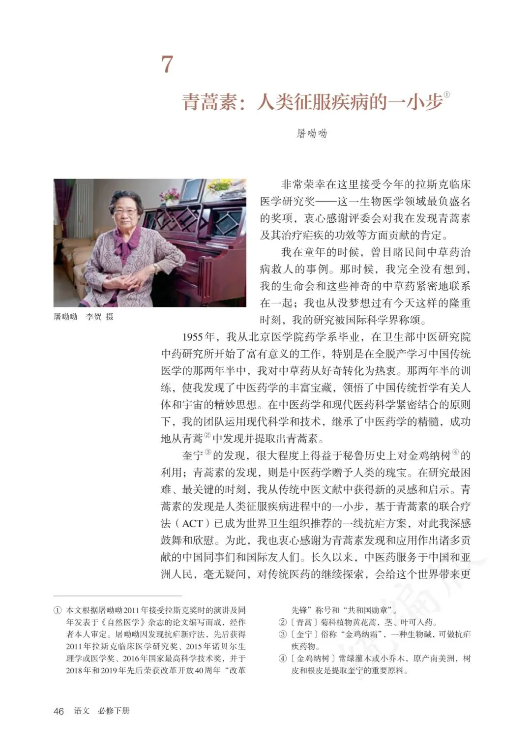 7 青蒿素:人类征服疾病的一小步/屠呦呦