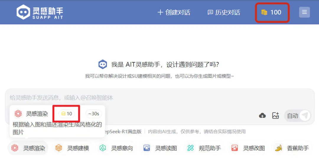 使用不同智能体会消耗不同积分~