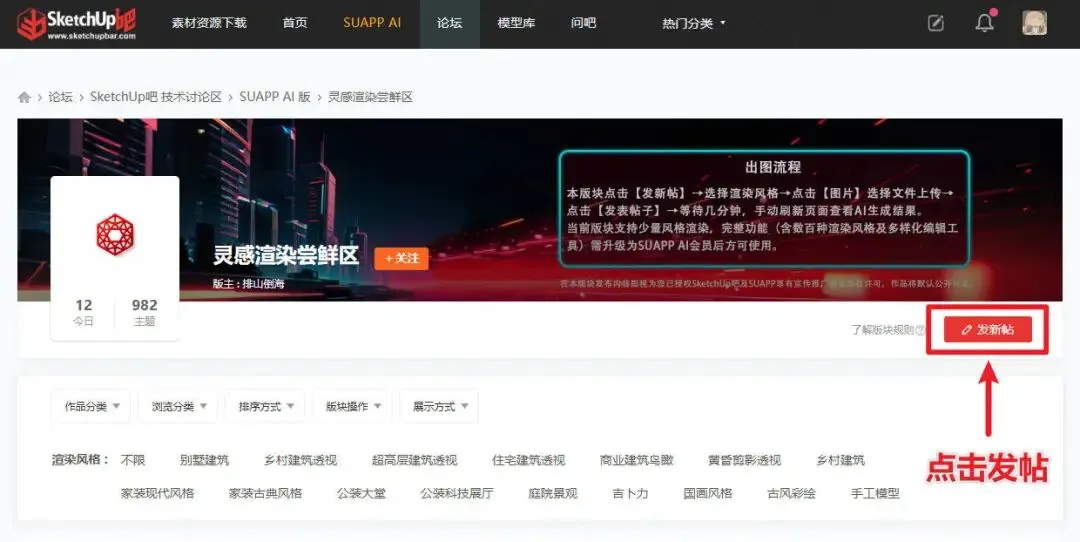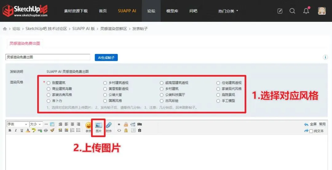 选途径二:如果你正在摸鱼,想随手试试AI渲染的效果,发个帖就走人,无负担无压力~