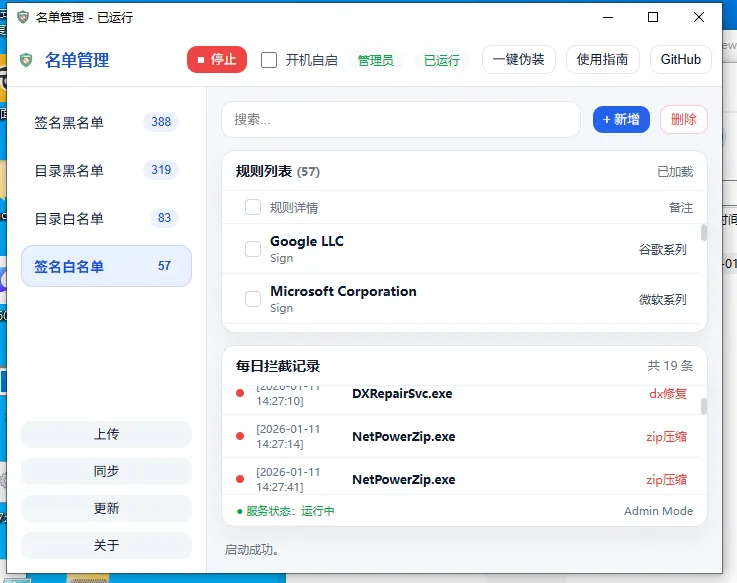 3.规则更新:定期通过程序内的更新功能或前往项目主页,更新证书和进程黑名单规则,以应对新出现的流氓软件变种。