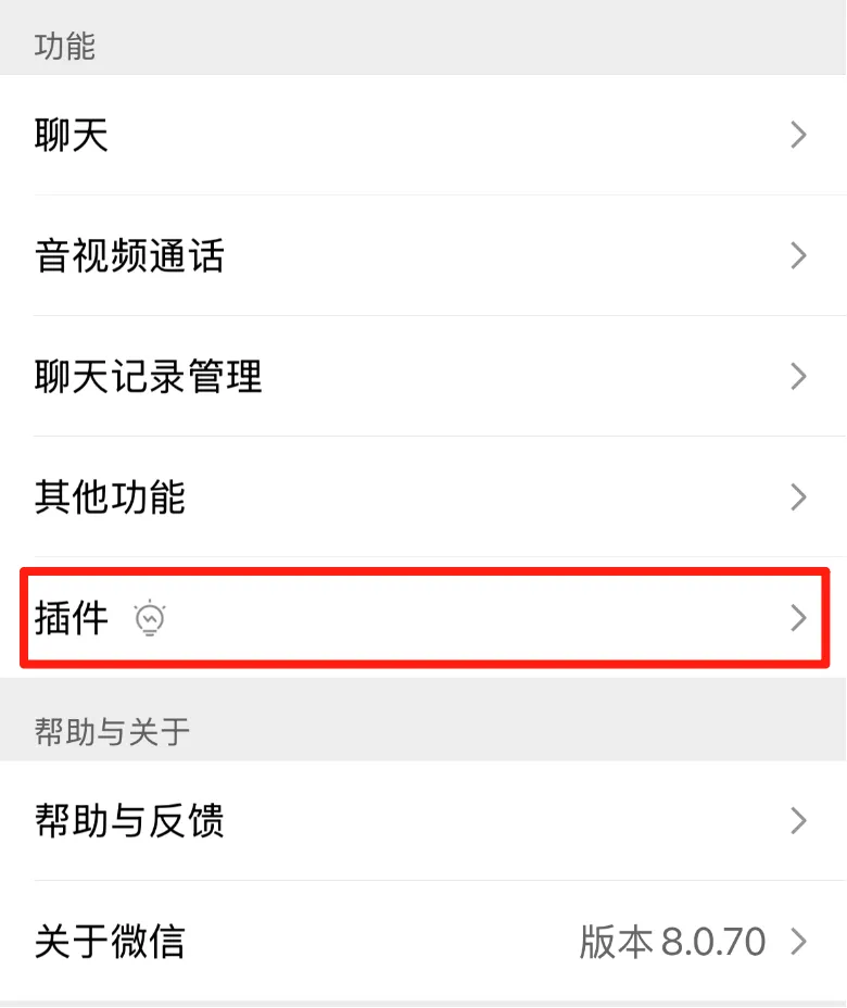 然后找到路径,点开微信——我——设置 → 插件入口。