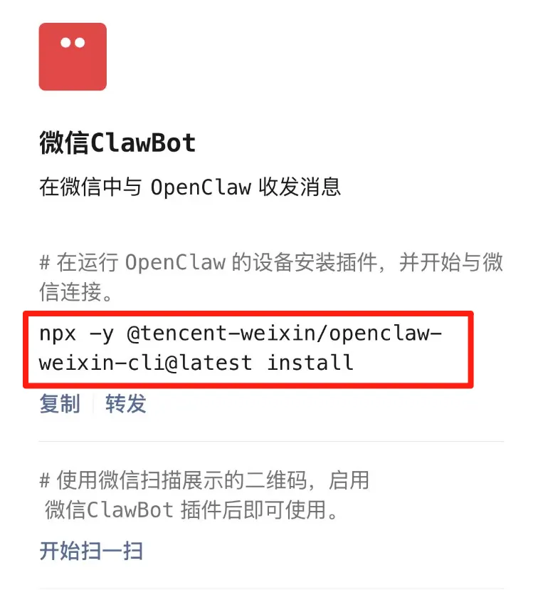 【复制:npx -y @tencent-weixin/openclaw-weixin-cli@latest install 复制】