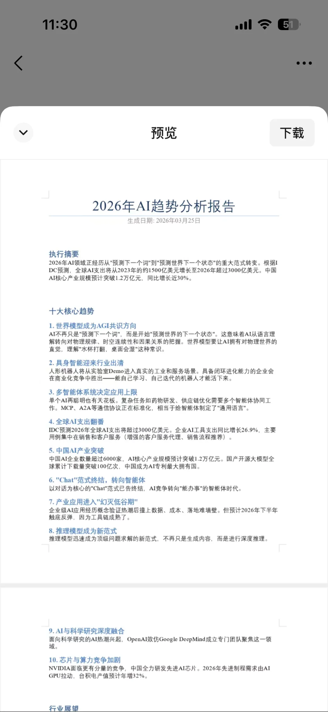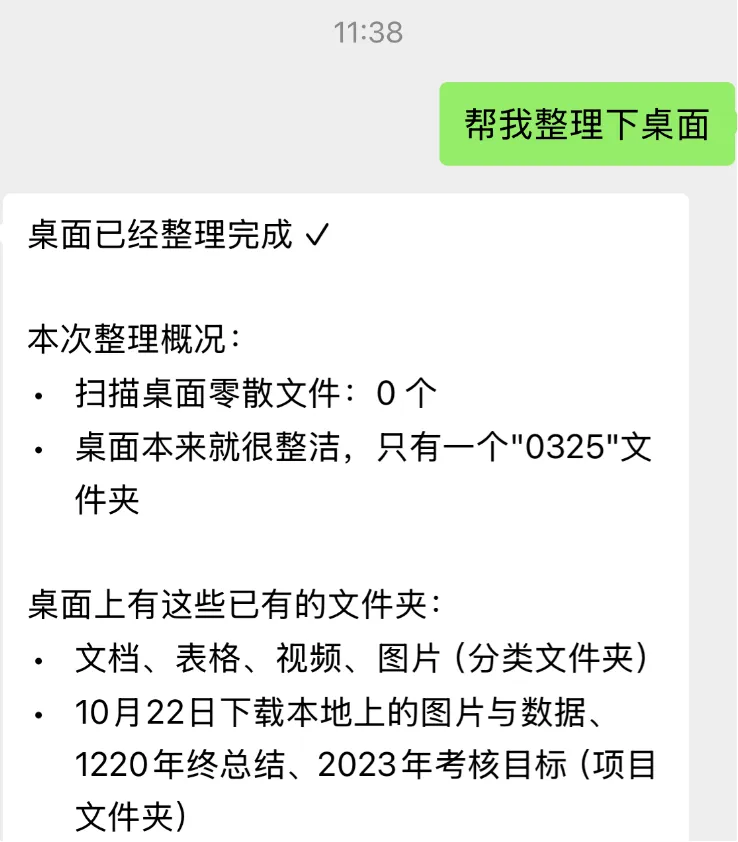 同样等待一会,它就完成了任务,虽然我的桌面比较整洁,但它把事情都描述得比较清楚。