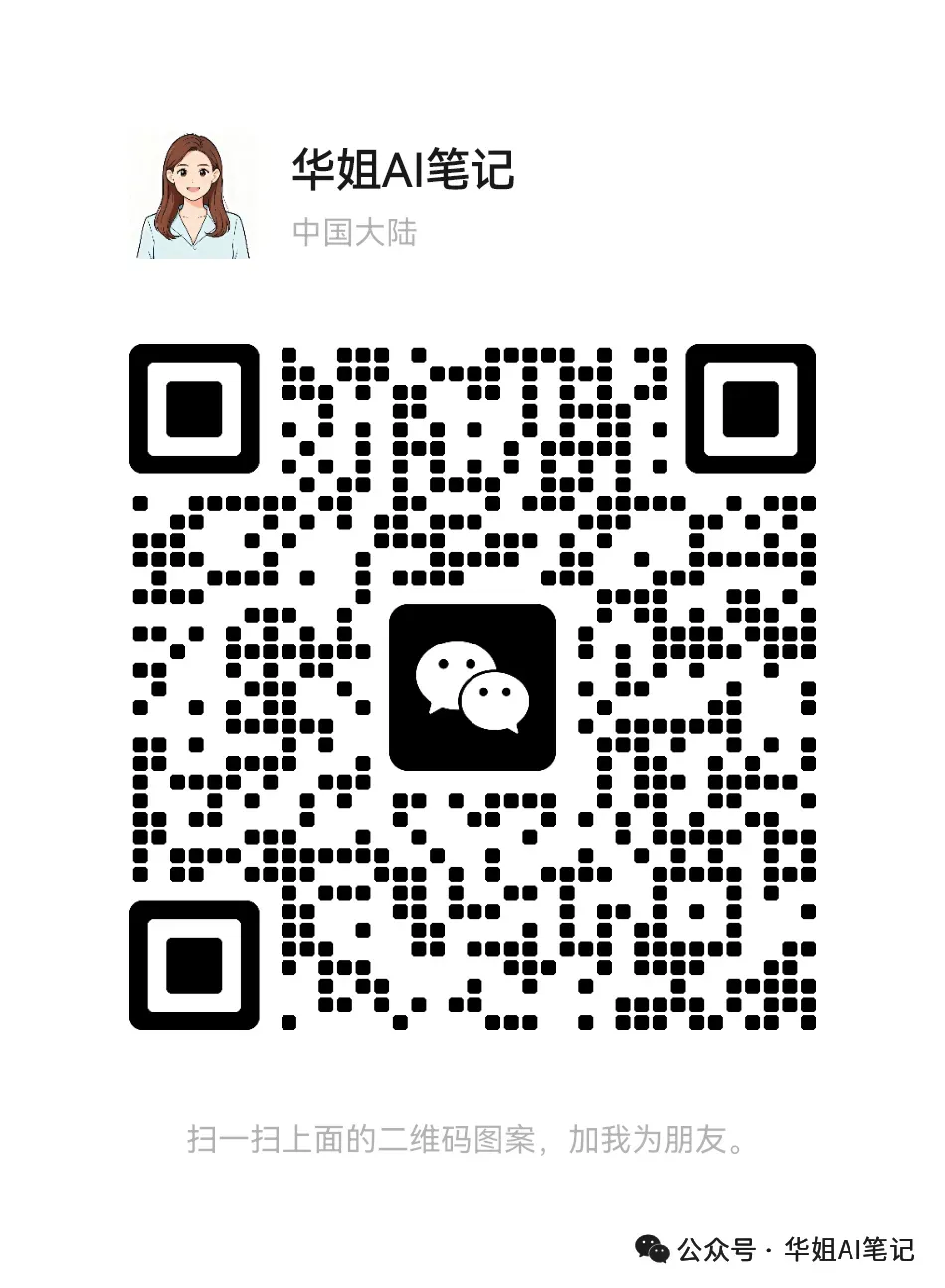 华姐正在组建一个AI变现公益社群,每天都会分享最新的AI工具技巧、实战案例与变现思路,全程无广告、纯干货。感兴趣的朋友可以扫码添加下方微信,下方扫码备注“AI”拉你入群。