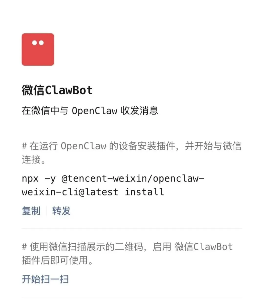 npx -y @tencent-weixin/openclaw-weixin
