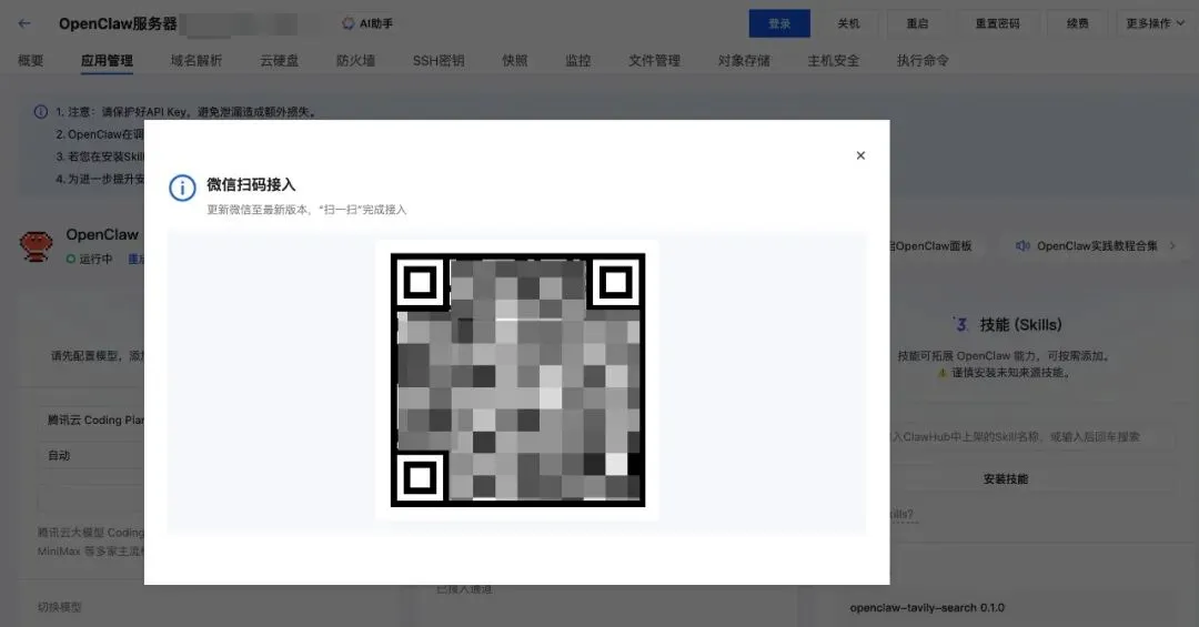 稍等片刻,在微信扫码接入的弹窗中将出现一个二维码: