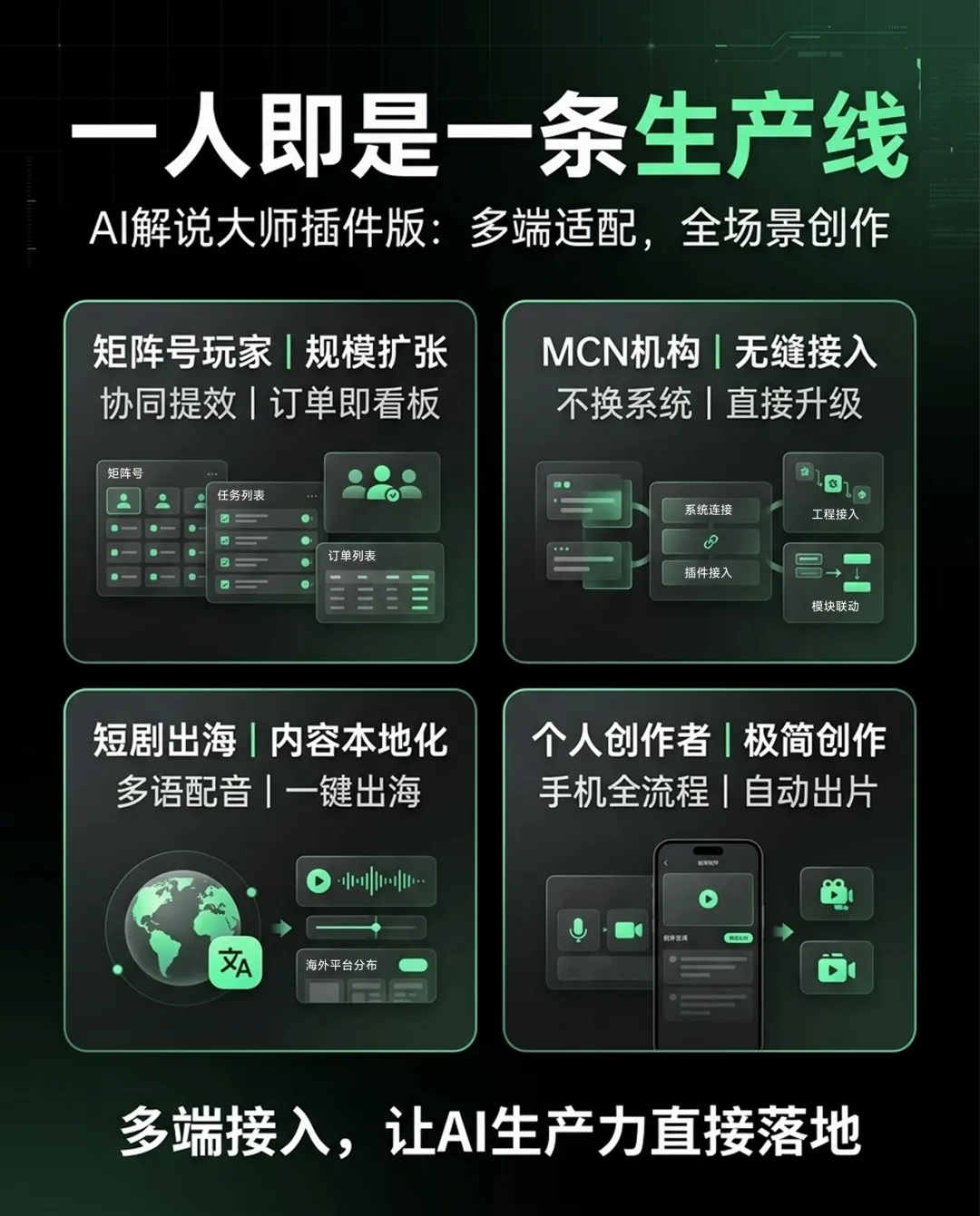• 短剧出海团队: 利用多语种解说功能,直接搞定跨语言解说,助力内容快速掘金海外 -