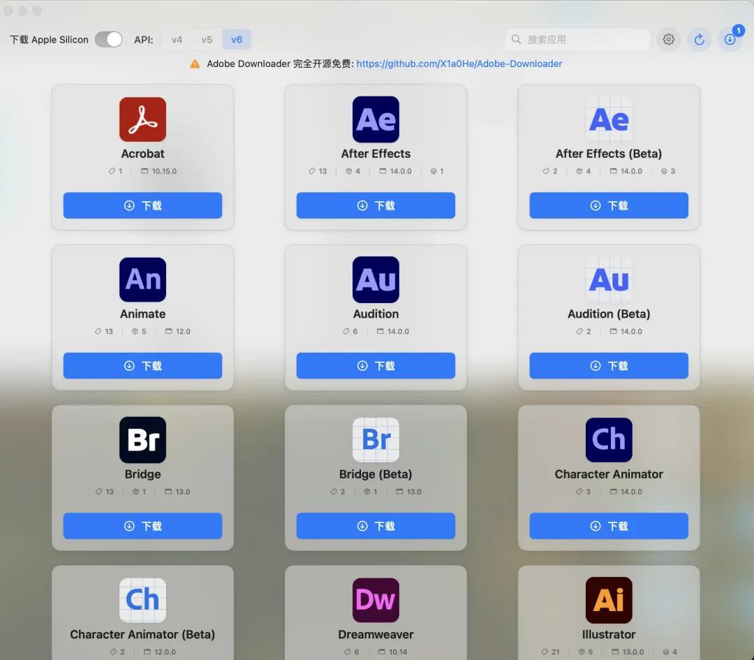 后来朋友扔给我一个东西,叫Adobe Downloader。打开一看,全家桶整整齐齐摆在那,想下哪个点哪个。没有捆绑,没有区域限制,下载完就能用,激活简单到我想哭。