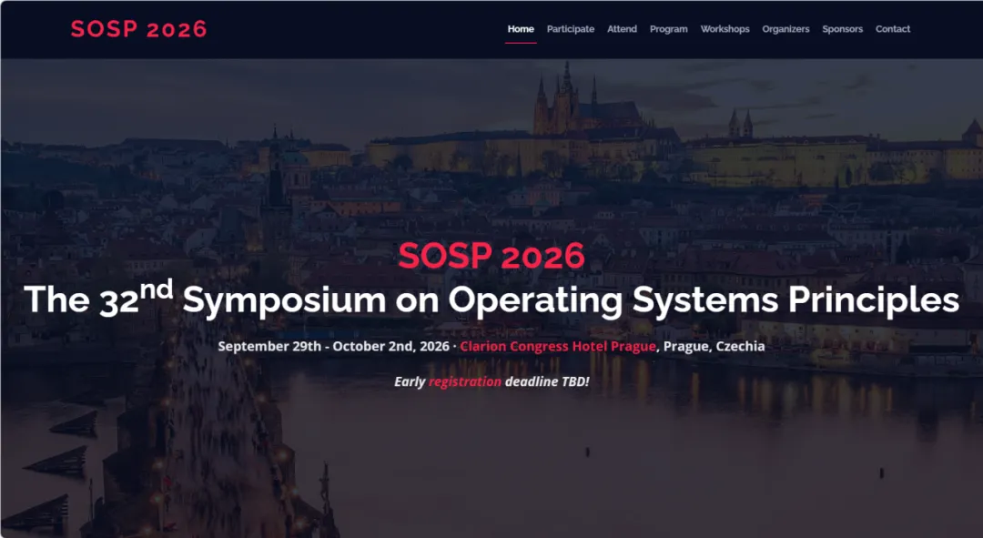 会议介绍:SOSP 2026是第32届ACM操作系统原理研讨会,将于2026年9月29日至10月2日在捷克布拉格举行。涵盖操作系统、分布式系统、云计算、存储系统等广泛主题,接受原创性研究论文并采用双盲评审。