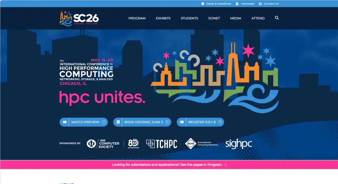 会议全称:SC 2026: International Conference for High Performance Computing, Networking, Storage, and Analysis
