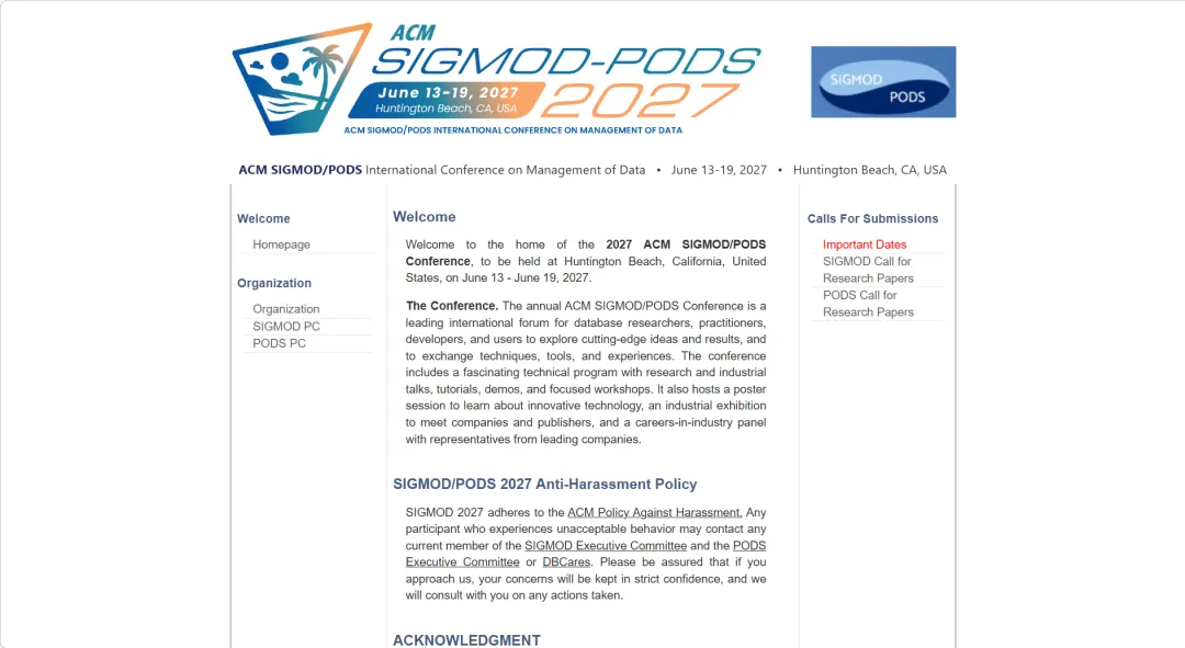 会议全称:SIGMOD 2027: ACM Conference on Management of Data