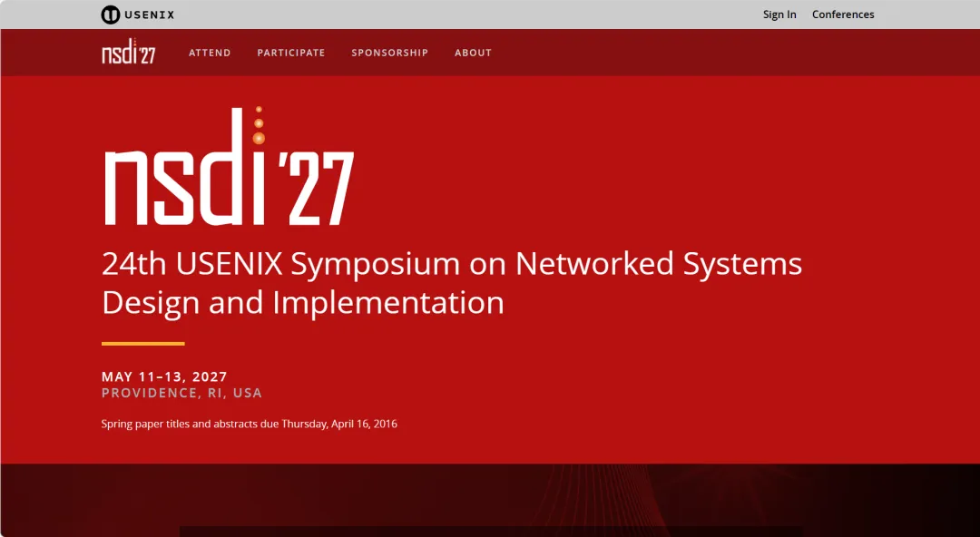 会议全称:NSDI 2027: USENIX Symposium on Networked Systems Design and Implementation
