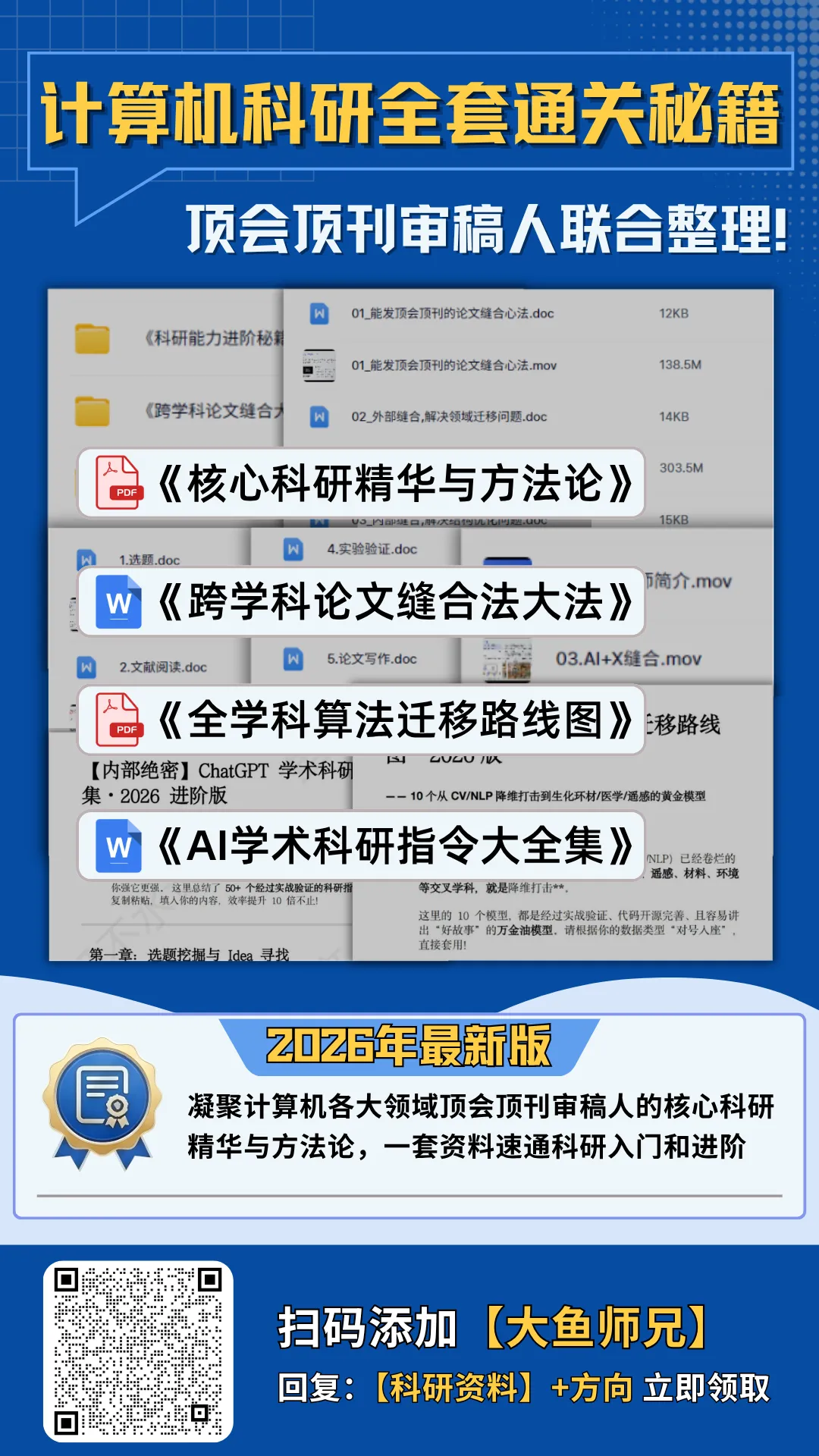 📂 扫码添加【大鱼师兄】并回复你的研究方向,获取《计算机科研全套通关秘籍》全套资料!