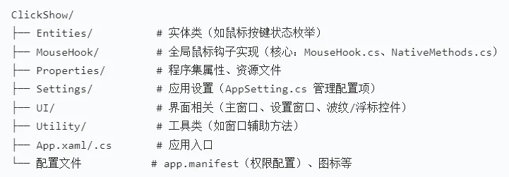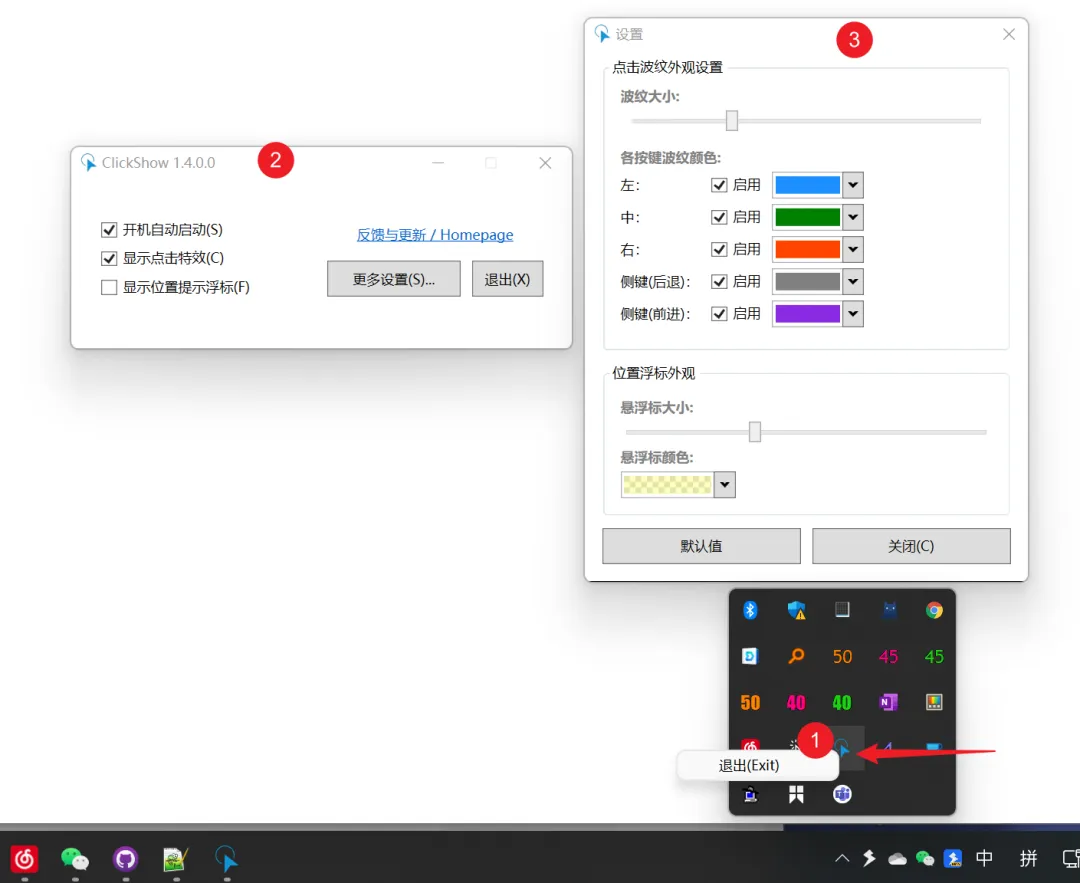 Windows 平台鼠标点击可视化开源工具,核心是给鼠标点击加彩色波纹特效,方便录屏、演示、直播看清操作