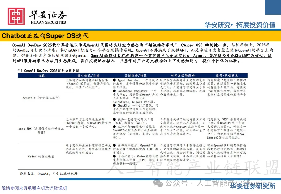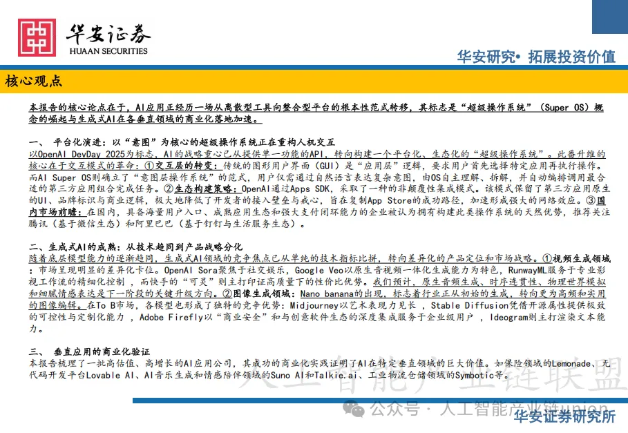 华安证券这份深度研究报告揭示了一个正在发生的根本性转变——人工智能正经历从离散型工具向整合型平台的范式跃迁。”超级操作系统”(Super OS)概念的崛起,标志着生成式AI从实验室走向商业化落地的关键拐点。这场变革不仅关乎技术迭代,更是一场关于生态构建、商业模式重构和产业链价值重分配的全面战争。