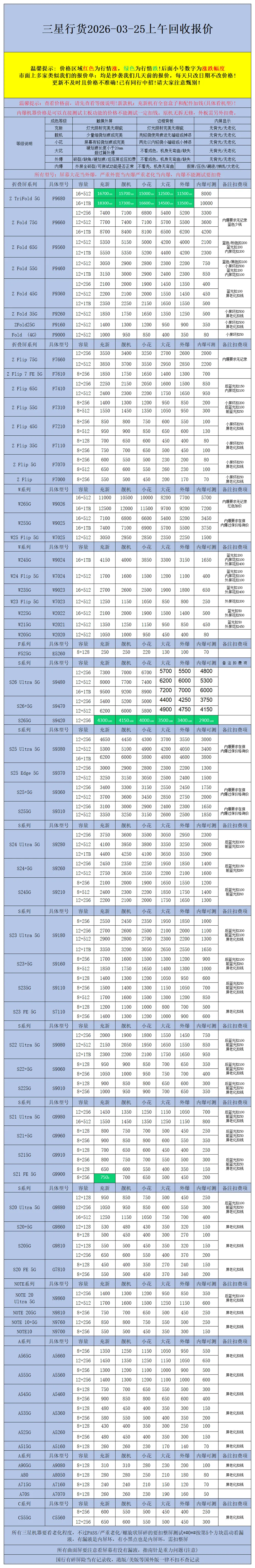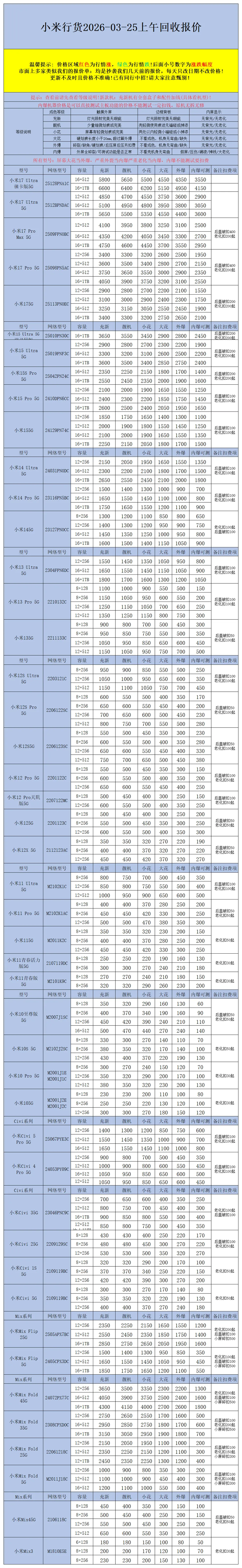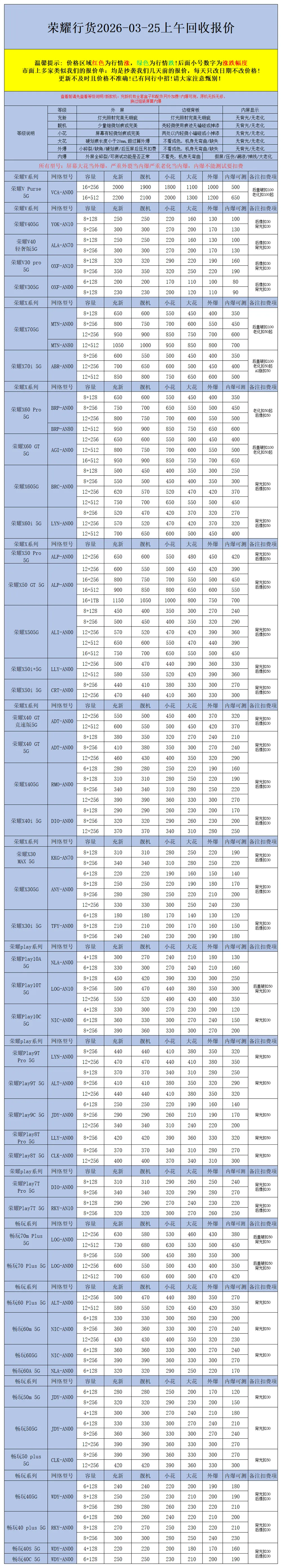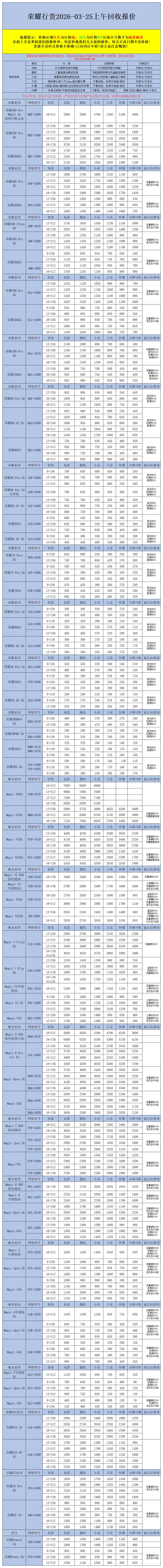 【安卓】二手机回收报价2026-03-25
