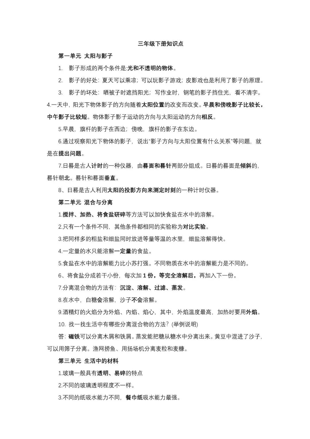 青岛三年级下册科学知识点汇总-可下载
