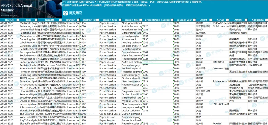 免费下载!2026视觉与眼科研究协会年会(ARVO)摘要内容6400+数据集(中英双语版本)