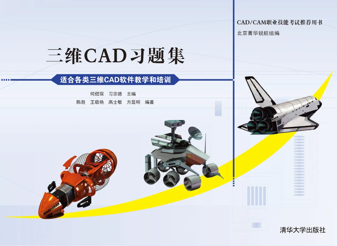 在CAD/CAM职业技能考试推出之前,国内CAD题库大多来自台湾或美国,知名命题人或整理人如林清安、林龙震等。2007年底,北京菁华锐航科技有限公司编著的《三维CAD习题集》逐步改变了该领域的格局。该习题集由清华大学出版社正式出版后,迄今已经重印26次,是CAD习题集中发行数量、发行时间、重印次数最多的。各院校和社会培训机构的教学案例,很多选自该书。