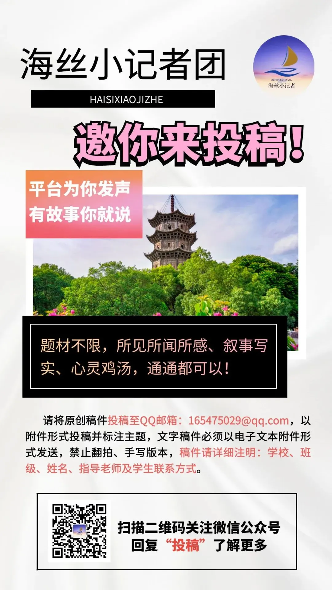 海丝少年公众号平台将原创文章赞赏所得金额的70%作为原创作者的稿酬,30%用于平台的编务推广(用于资助日后的平台宣传、 图书编务及其它活动计划的开支)。上月赞赏所得金额明细将在每月10号前统一公布,稿酬在10元以下的将统一用于资助平台宣传,10元以上的将以微信红包/支付宝形式向作者发放相应比例的稿酬。