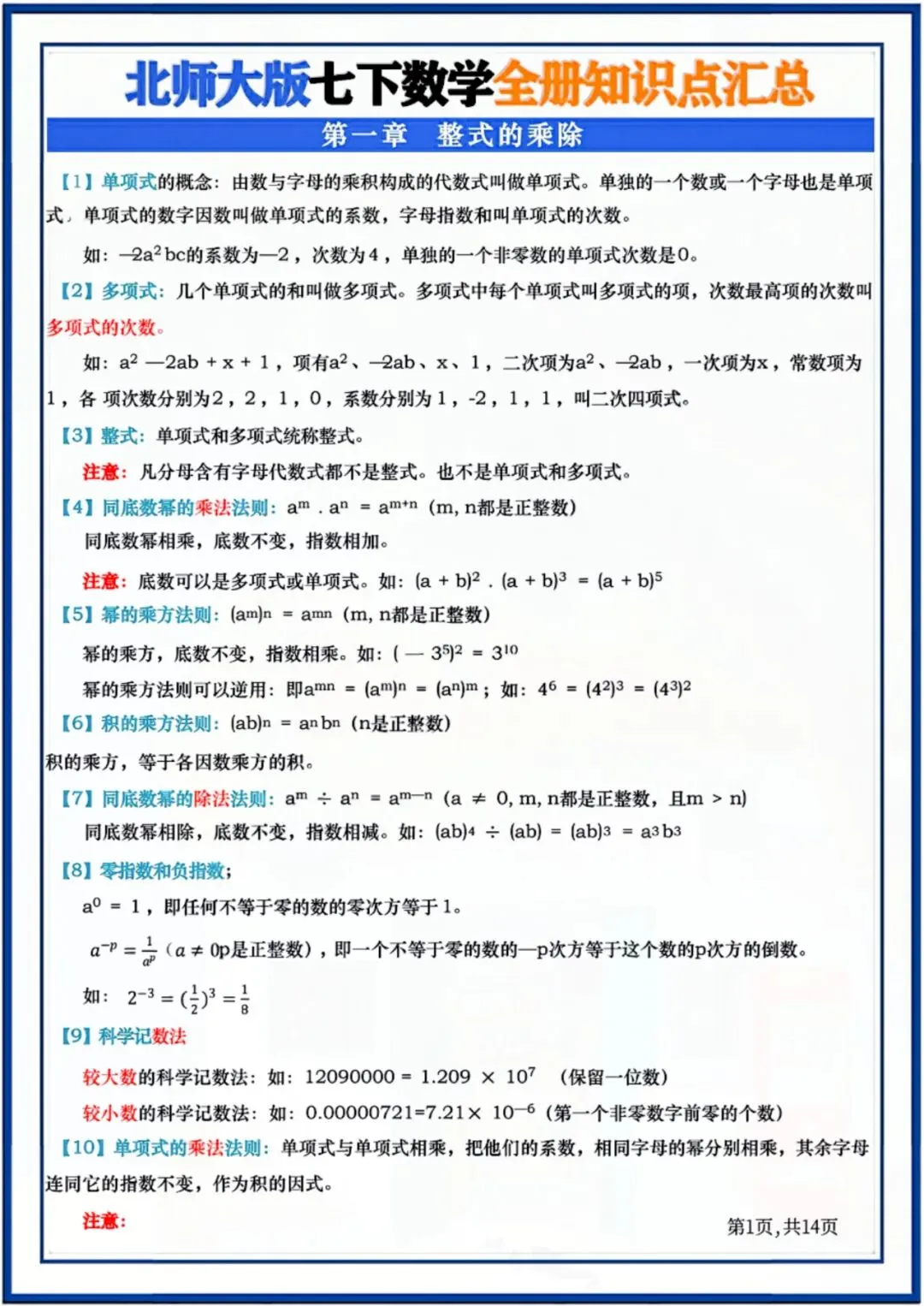 今天老师给大家整理了:七年级下册数学全册知识点汇总 电子版可打印!