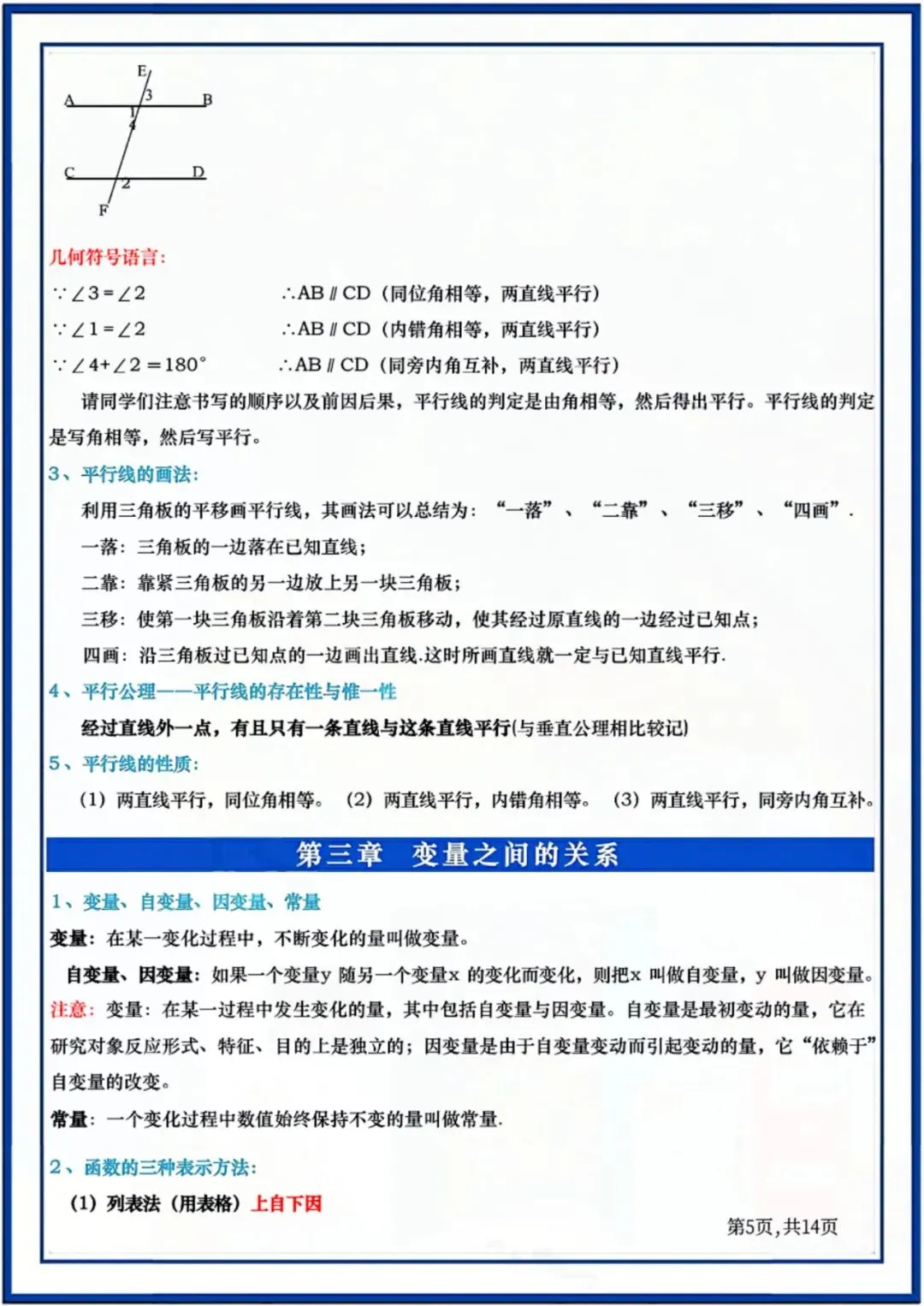 七年级下册数学全册知识点汇总 电子版可打印