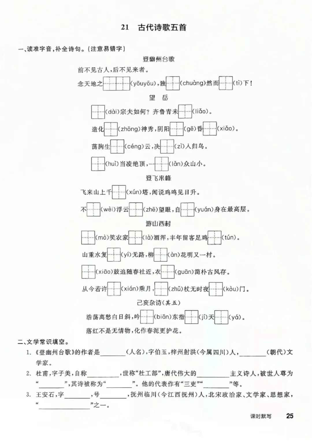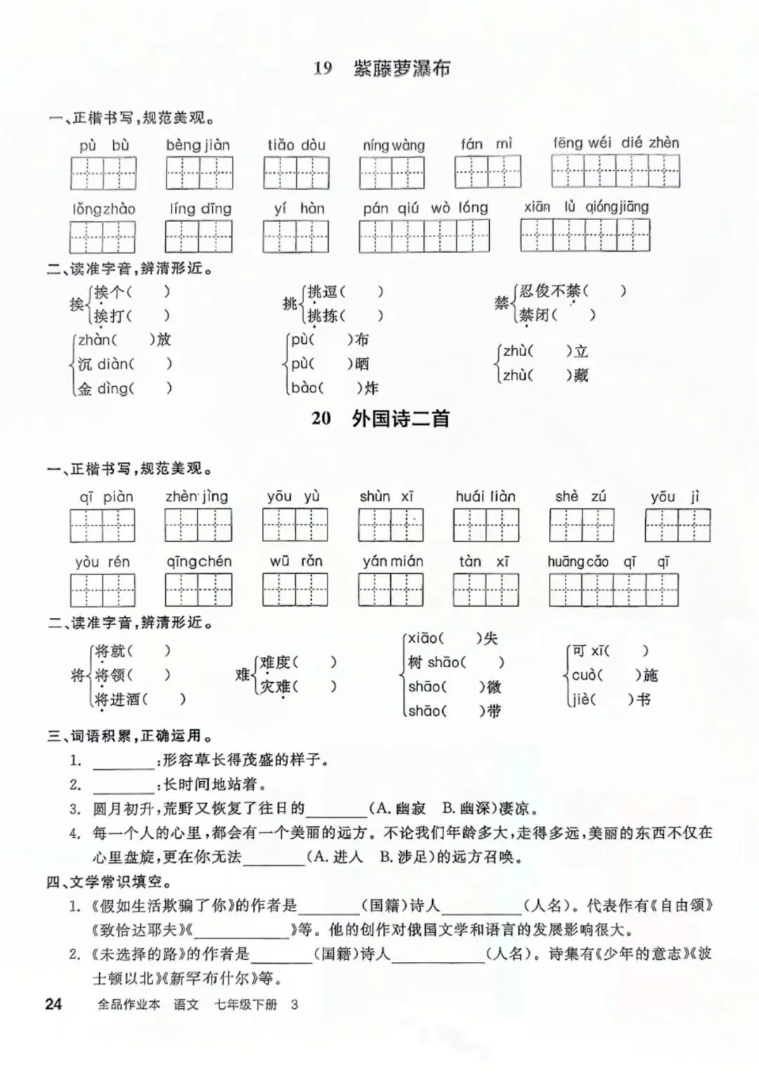 今天老师给大家整理了:七年级下册语文课时默写 电子版可打印!