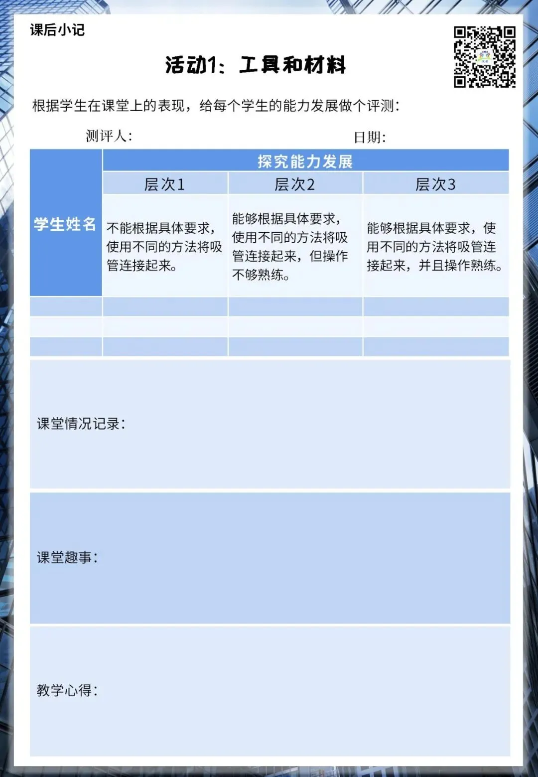 4、 每个学生至少需要7根吸管、5个回形针。考虑到学生会有损坏材料的情况,教师可以多准备一些。
