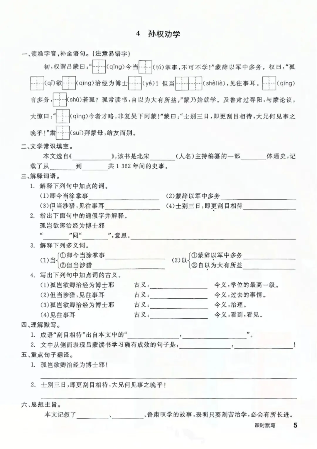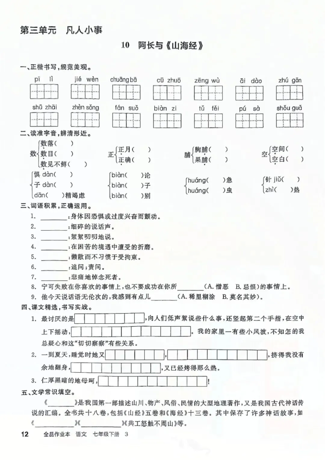今天老师给大家整理了:七年级下册语文课时默写 电子版可打印!